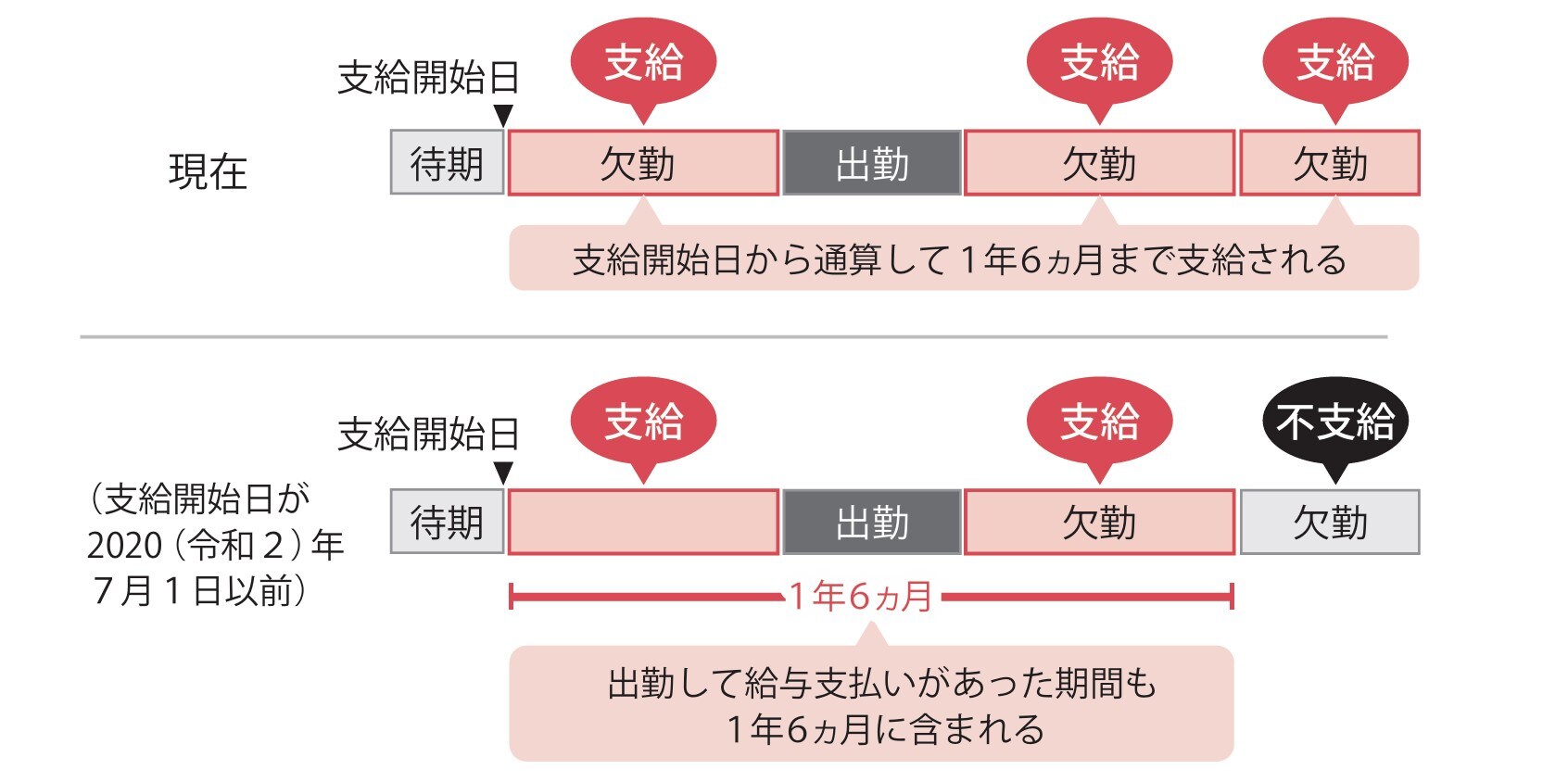 ただし、支給を開始した日が2020(令和2)年7月1日以前の場合は、経過措置として支給を開始した日から最長1年6ヵ月までの期間になります。