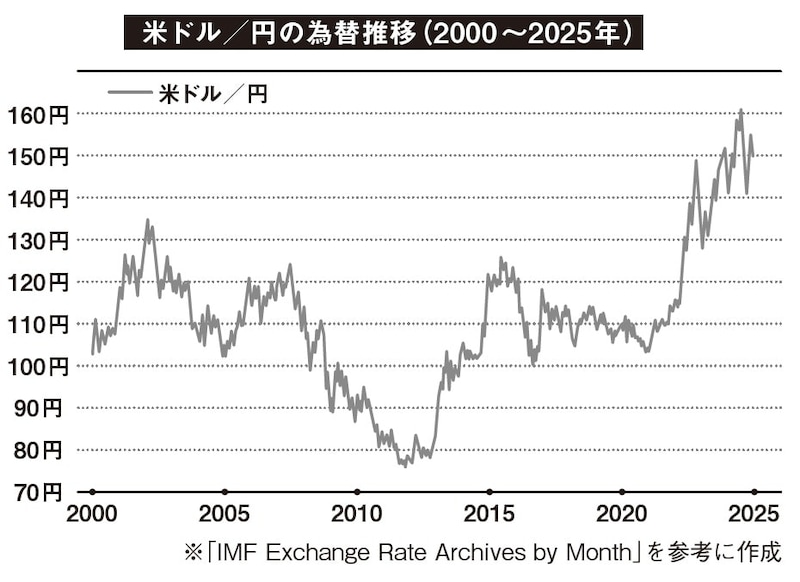 [図表1]米ドル/円の為替推移(2000~2025年)
