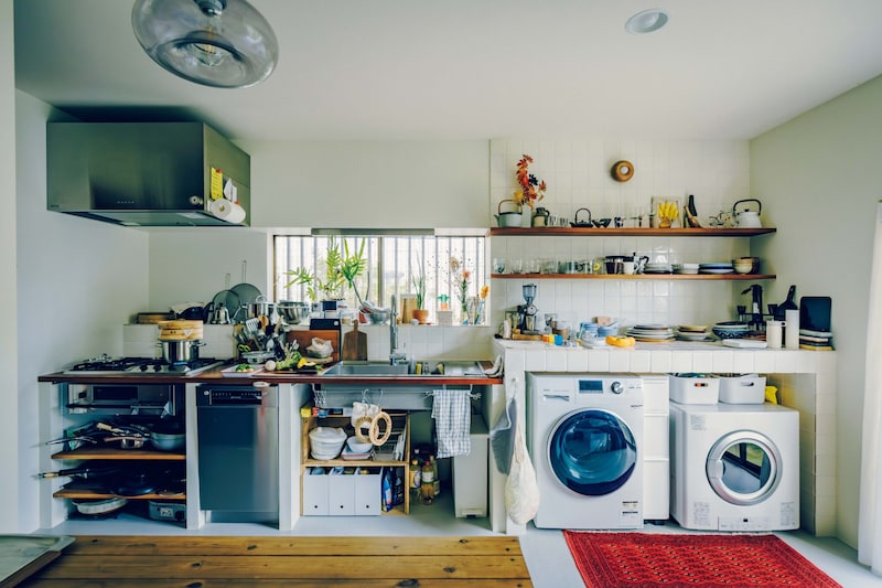 築150年の古民家だというのに、思いがけず明るい台所だ。正面に設けられた明かり取りの窓から、やわらかな光が注ぎ込んでいる。 台所の主は、飛騨高山の田園に暮らす朝倉佳子さん。夫の圭一さんと民藝の器を扱う『やわい屋』を営む。移築した江戸末期建造の平屋には、店舗とギャラリー、私設図書館、居住スペースが収まっており、全幅の信頼を置く大工の渡邊覚さんと相談をしつつ、4度の改修を経て現在の形に辿り着いた。 工夫とアイデアに溢れた台所を訪ねた&Premium145号(2026年1月号)「料理好きの台所」より、『やわい屋』店主・朝倉佳子さんの台所を紹介します。 機能的ではないけれど、安心感のあるおおらかさ …