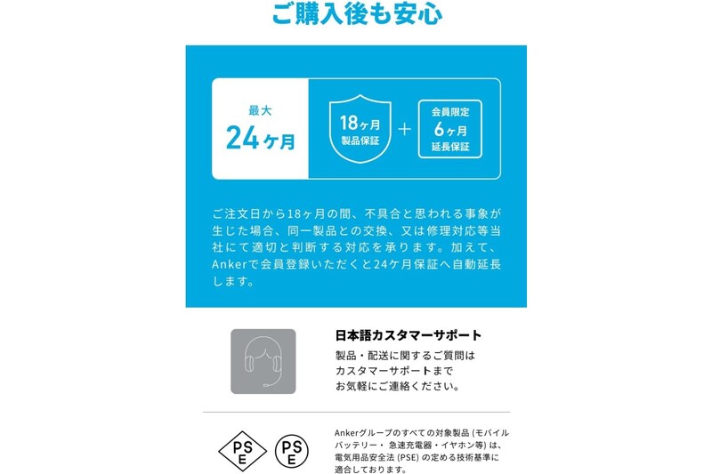 PSE技術基準適合なので、日本で使う前提でも選びやすい部類です。
