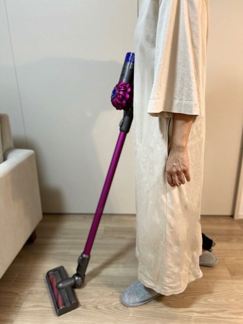 さっそく編集・Hもトライ。「初心者は1日5分からでよいとのことですが、大丈夫そうでしたのでまずは10分ほどキープ。さらに立ったままの作業を推奨ということで、掃除機をかけてみました」