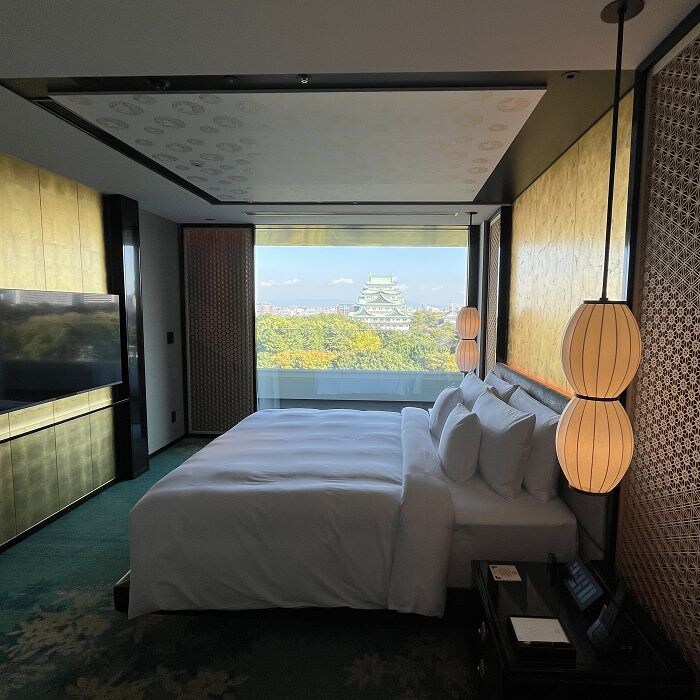 まるでお城に訪れたみたい、という第一印象は、客室に入ってからもなお続きます。私がチェックインした部屋からも眼下に名古屋城をのぞむことができ、朝には朝焼けに輝く勇姿を、夜にはライトアップされた幻想的な姿を見せてくれます。
