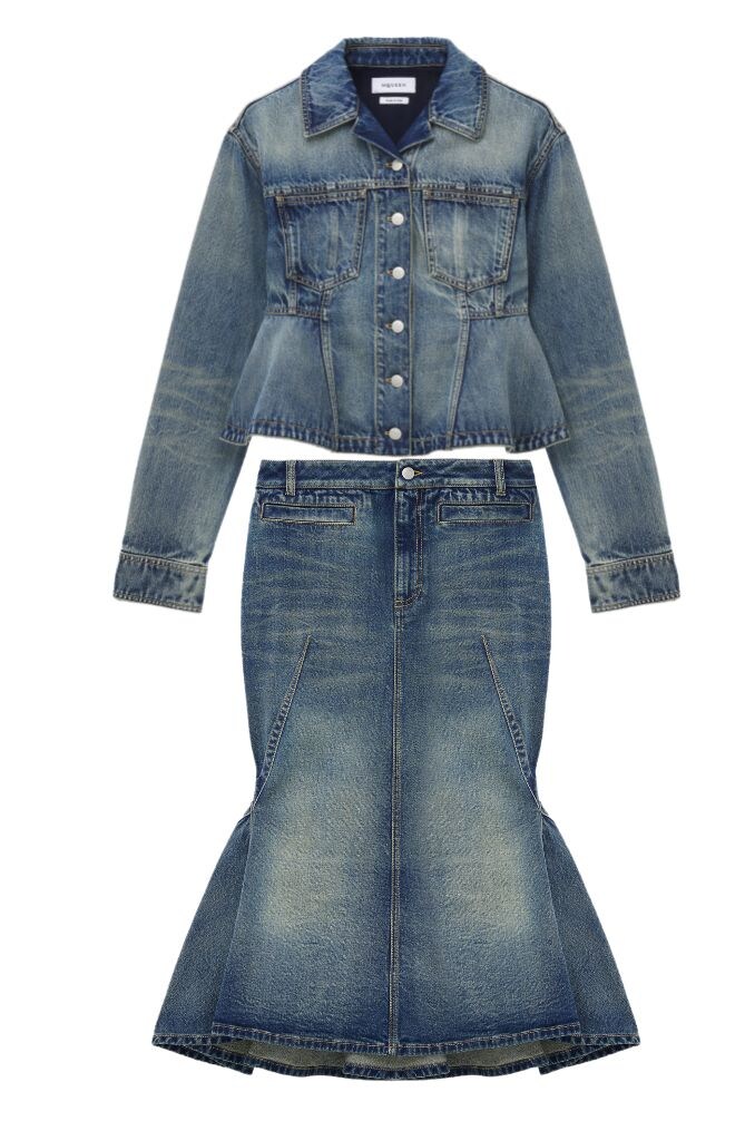 コーディネートに、ワンアイテムだけデニムを取り入れるのも素敵だけれど、今年はなんといってもセットアップが人気だ。ボトムスには、パンツよりスカートが気分。個性派スカートが多いので、シンプルなデニムジャケットやジージャンを合わせてもモード感たっぷりに着こなすことができる。