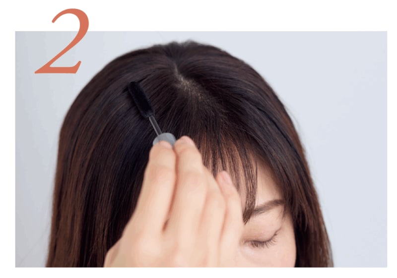 2. 頭頂部など、切れ毛の目立つ表面の髪になでつける