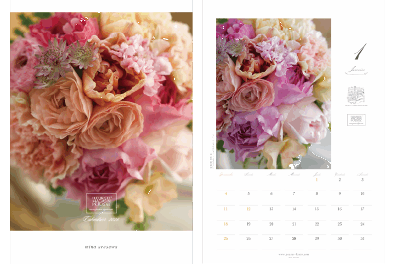 作った作品をご自身で撮影もされている美奈さん。毎年販売しているプーゼのオリジナルカレンダーは、いつもフレッシュなお花がそばにあるようで、私も楽しみにしています。