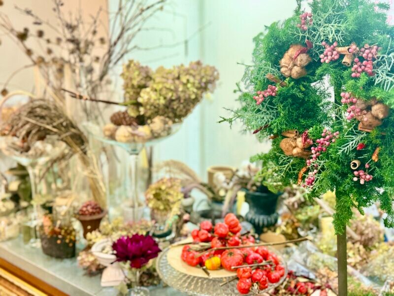 アトリエでは、季節ごとにさまざまなレッスンが開催されています。会員制の教室で本格的なフラワーアレンジメントを習うこともできるほか、1dayレッスンが開催されていることも。京都旅行の際に参加される方もいらっしゃるそう。