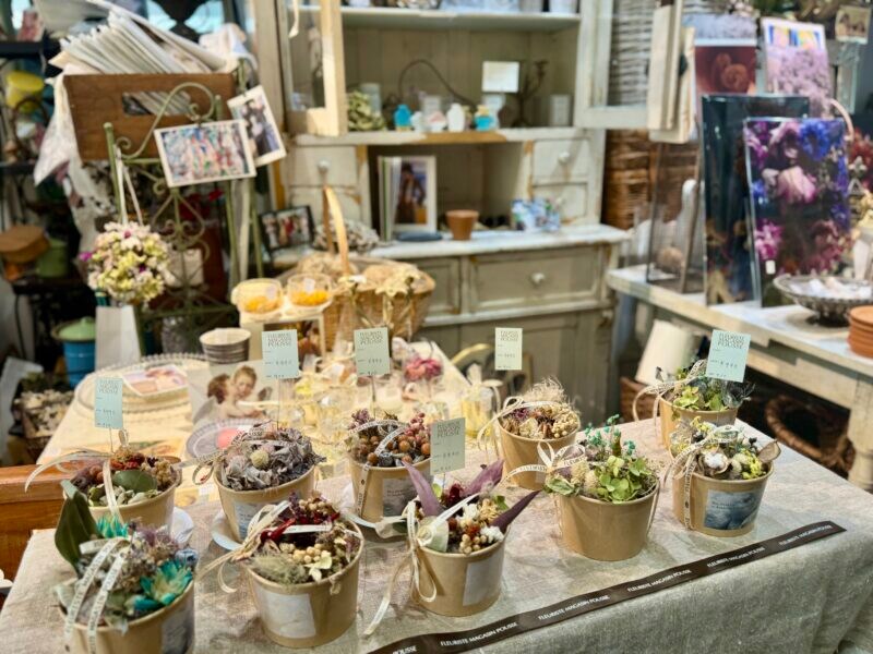 フラワーアレンジメントの材料や、ドライフラワーのアレンジメントなども販売されています。レッスンやイベントのスケジュールは、POUSSEの公式サイトをご参照ください!