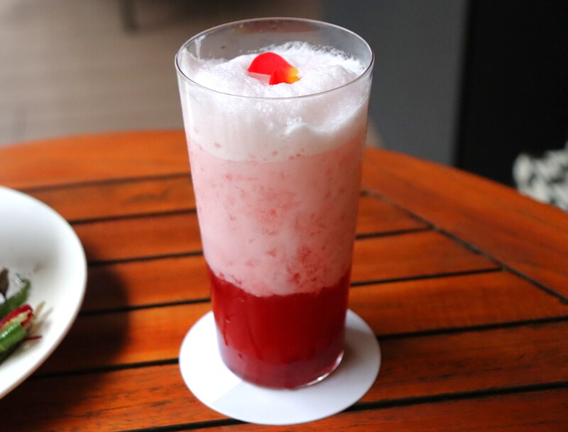 苺とマンゴーをベースにしたフルーティーなモクテル。フレーバーティーとアールグレイがブレンドされており、とても飲みやすい一杯です。上部にはグレナデンシロップで色付けされた、ほんのりピンク色のフォームミルクが乗っており、味わいだけでなく2層で可愛らしい見た目も楽しめます。