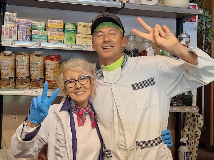 店に入るやいなや、カウンターの中から「チャオ!」と、眼鏡姿がチャーミングな女性が、笑顔で挨拶してくれました。その元気な声は店に響き渡り、ハッとするほど華やか。場を明るくするオーラを感じました。自信たっぷりに家族や商品を説明する姿は説得力満点。美しいおばさまだなぁと思いながら話していると、なんと娘さんはミスコンの受賞歴があると知り、それも納得。鮮やかな挿し色が映える白地の服に、アクセサリーを上手に合わせ、小さな店に立つ彼女の姿は、有名店のマスコットガールのようで、まさに「美意識と自信は生きる力」だと教えてくれているようでした。