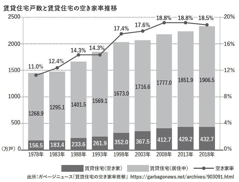 [図表1]賃貸住宅戸数と賃貸住宅の空き家率推移