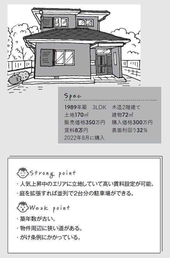 もともと350万円で売りに出ていたものを指値を入れて300万円で購入した物件です。業者さんからの紹介ではなく、ネットで公開されているものに目をつけました。