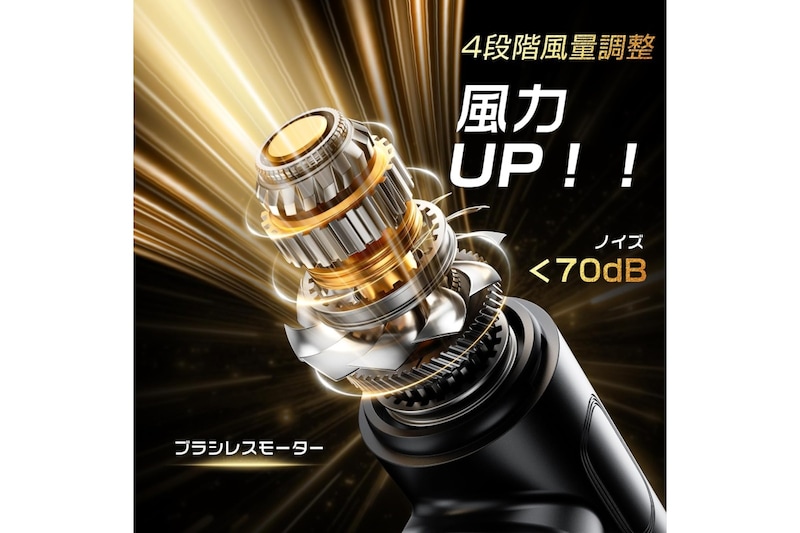 Amazonでみるブラシレスモーター採用でパワーを確保しつつ、コードレスで取り回しやすいのも魅力です。デスク周りだけでなく、車内やサッシなど、コンセントが遠い場所でも使いやすいです。