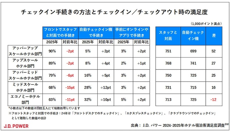 チェックイン手続きの自動化進展、ホテルタイプで満足度に差