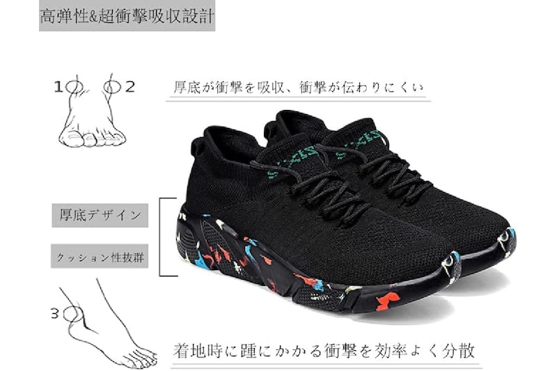Amazonでみる厚底ソールはクッション性を期待しやすく、歩行時の衝撃をやわらげたい人に向きます。