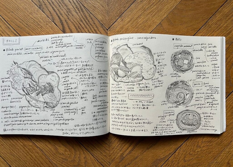 私がすっかり気に入ったのは、はじめは「どうだろうなぁ」と斜に構えていたベーコン入りのものだった。しっかりした燻製香のベーコンに、バジル、リンゴ、アボカド、ひまわりの種を合わせ、ピリ辛マヨネーズをほんの少し忍ばせて巻き込み、ごま醤油のソースがついてくる。これが、なんとも、楽しい気分になった。というのも、ひと口食べた瞬間に「あ〜、これ、高校時代にコンビニで売っていたら、週3で買っていたな」と思ったのだ。「大人になって手を出さなくなっていたけれど、そもそもこういう味、好きだったよね、私」と自分の元を探り当てられたような気がして、思わずニヤついてしまった。エリーとベルトランに伝えたら、実際、毎度これを目当てに週に3、4回来店する常連客がいるらしい。