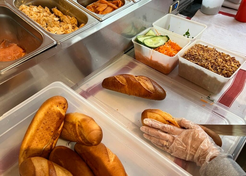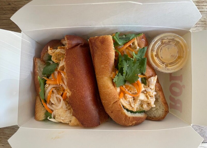 さて。この、生春巻きが主軸の店にサンドイッチが2種類ある。具はチキンと、なす。チキンにはピーナッツソースが添えられ、なすバージョンのおともはスイートサワーソースで、いずれも店のオリジナルだ。メニューに書かれた“ソフトサンドイッチ”のサブタイトルが気になった。パリで、バインミーをスペシャリテとして展開する店ではパンを特注するケースが少なくない。生地は普通のバゲットと同じでもサイズを調整したり、もしくは、生地の配合をリクエストしたり。サンドイッチに齧り付くとき、最初に舌に触れるのは具じゃなくてパンだから、パンが違えばサンドイッチ全体の印象もそれに伴い異なってくる。
