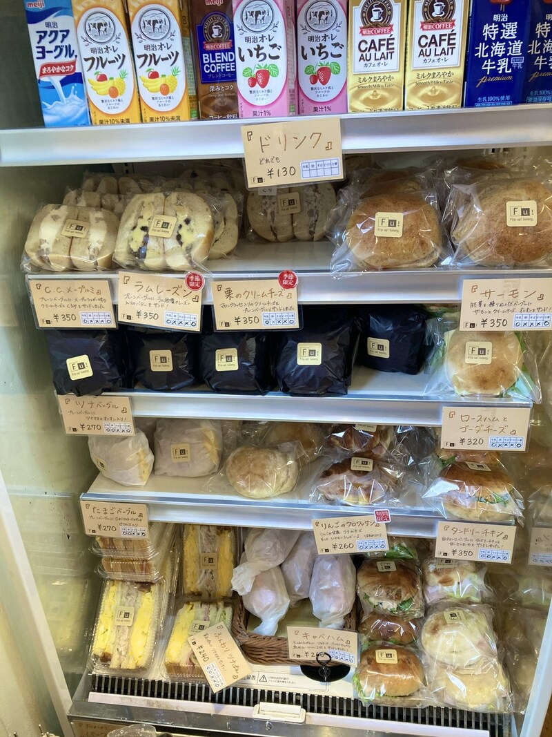 お店に入ってすぐ左にある冷蔵ケースには、ベーグルサンドが数種類。スイーツ系から食事系まで揃っています。