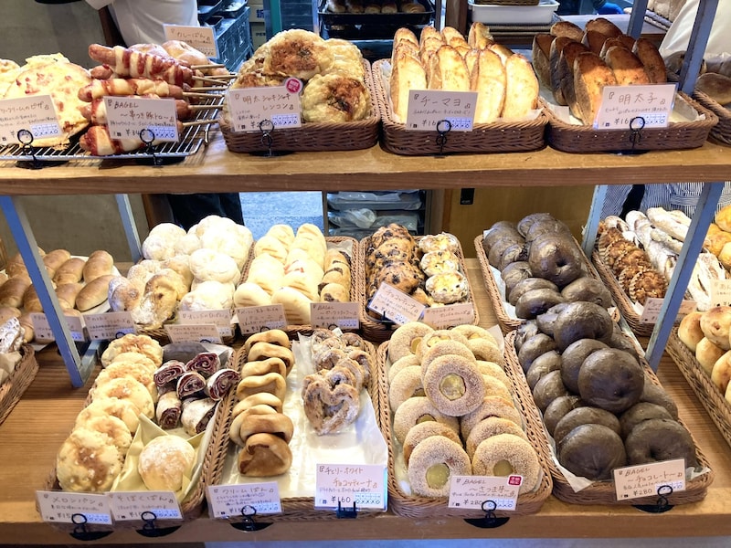 人気のベーグルを中心にサンドイッチからハード系まで、かなりの種類のパンが所狭しと並べられています。