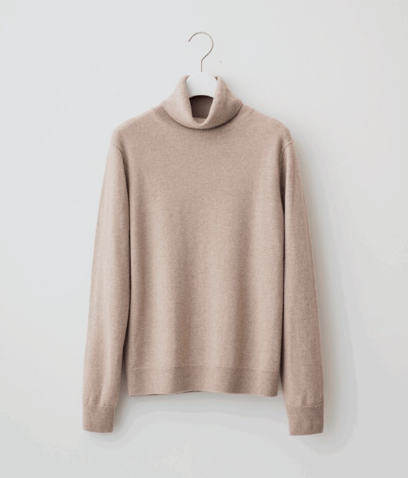 軽くて暖かく、肌触りも申し分ないカシミヤ100%のタートルネックセーター。カラーは、ベージュ、71パープルのほか、オフホワイト、グレー、ダークグレー、ブラック、オリーブ、ブルー、ネイビー、74パープルの10 色展開。