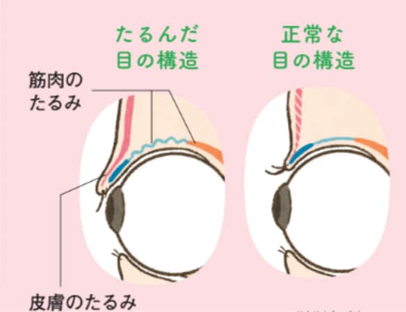 まぶたのたるみの原因は、筋肉と皮膚の老化です
