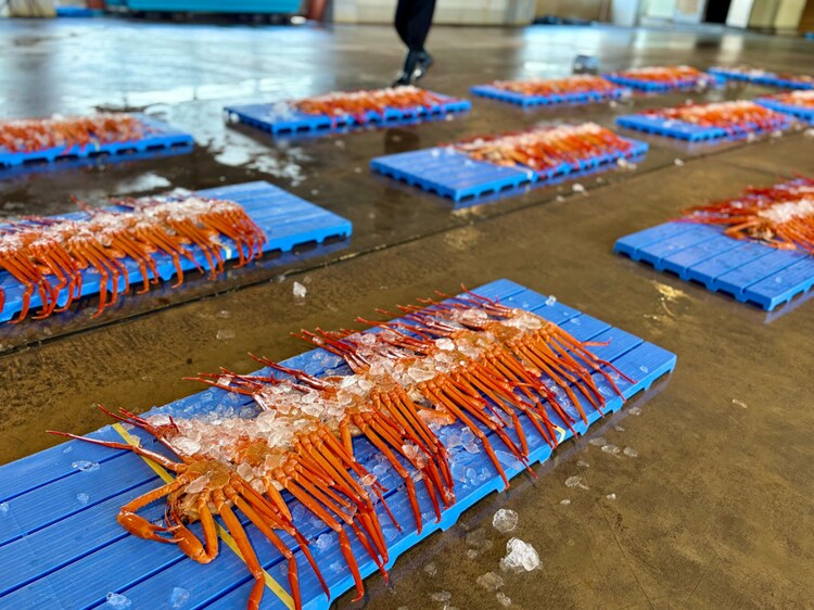 午後に行われる全国でも珍しい「昼セリ」を見学。水揚げ後すぐに競りにかけられるため、場内は活気に満ちています。ベニズワイガニが並ぶ光景は壮観で、基準を満たしたものは「高志の紅ガニ(こしのあかガニ)」としてブランド化。東京から訪れる人がいるというのも納得です。