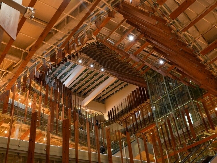 隈研吾氏が手がけた設計。富山県産材のルーバーが柔らかな光をつくる開放的な空間