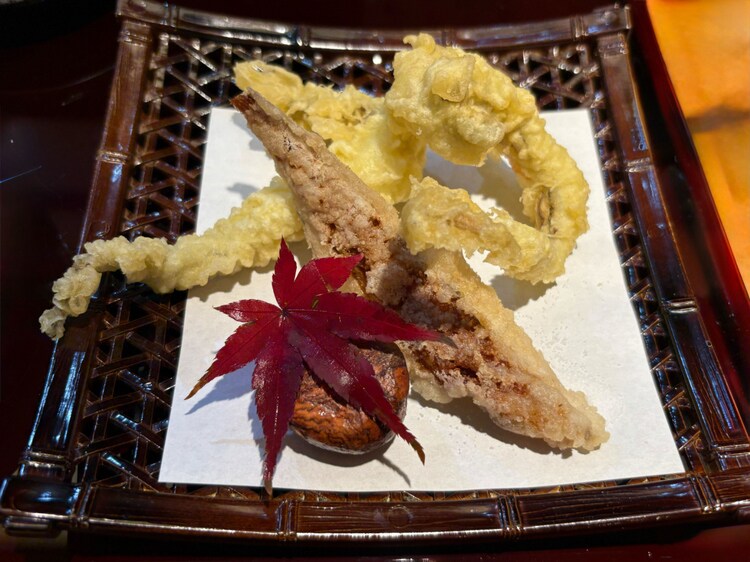 「げんげの天ぷら」。サクッと軽い衣に、とろりとした身が際立つ深海魚の一品