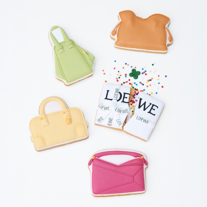 さらに、世界初のギフトカウンターも登場。スペインの伝統菓子パルメラやポルボロン、チョコレートなどが並び、食を通じてロエベの世界観に触れることができる。また期間限定で、日本のアイシングクッキー作家Fioccoによる特製クッキーも販売される。