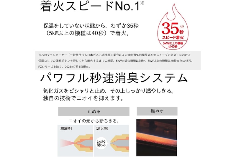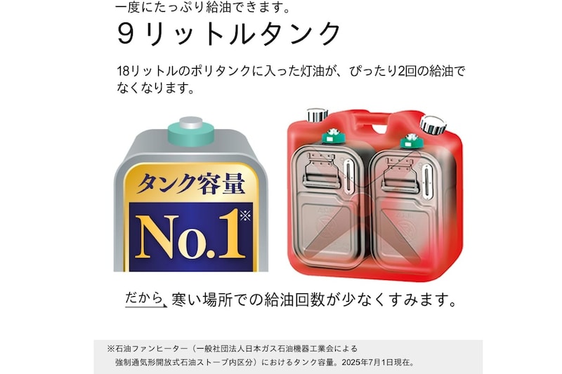前面の吹き出し口から温風を送る石油ファンヒーターなので、体感として立ち上がりの暖かさを求める人にも使いやすいタイプです。