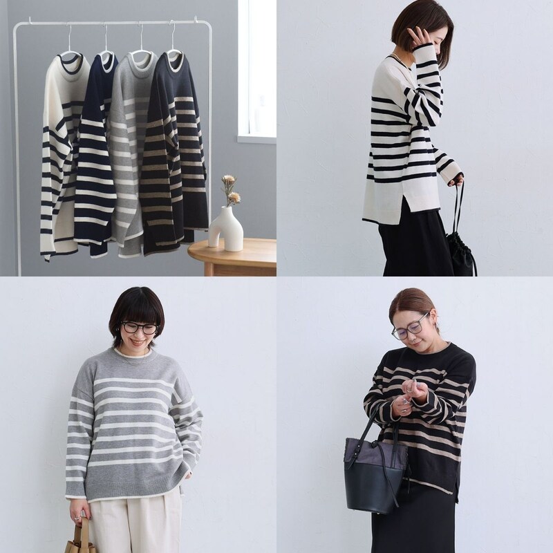 お手入れが楽ちんなボーダーニット。無地以外にも自分にとっての定番があれば、ちょっと気分転換をしたいな、という時に一役買ってくれそうですよ。