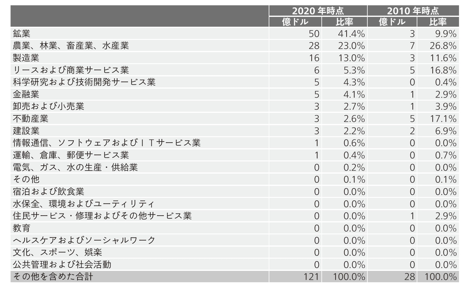 一方、製造業に関しては、中国は世界で巨額の投資をしているため、その全体に占めるシェアは1%程度にとどまります。したがって中国は、対ロシア投資において、製造業ではなく、第一次産業や鉱業に投資価値を見い出していると言えるでしょう。