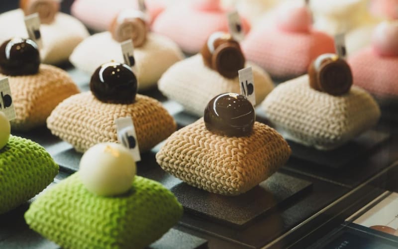 それから洋菓子の世界に飛び込み、「ル・コルドン・ブルー」で基礎から技術を学び、パリの洋菓子店やショコラトリーで経験を積む。26歳で「A lacroix patisserie」のスーシェフに就任、ベストオブパリを受賞。28歳の時にはパリの五つ星「palace hotel」でスーシェフを務めるなど、異色の経歴の持ち主。ブランドカラーであるブルーを基調としたフランスのパティスリーにいるかのような圧巻なショーケースや、3D CADを用いた独自の造形技術を用いた唯一無二のケーキは小住シェフならでは。