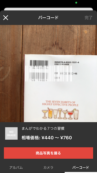 本などについているバーコードを読み込むことで、タイトルや商品説明の一部、ハッシュタグなどを自動入力して、売れやすい価格帯も教えてもらえますよ。これらを自動でやってもらえるだけで、出品時の手間はかなり軽減されます!
