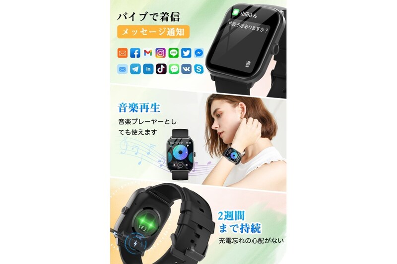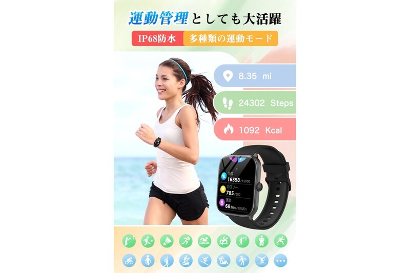 Amazonでみる価格を抑えながら、通話・通知・運動記録といったスマートウォッチの基本機能をひととおり試してみたい方に向いたモデルです。