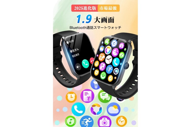 HOIBAIのスマートウォッチは、1.9インチの大画面を備えたモデルで、文字やアイコンがはっきり見やすく、通知や時刻の確認がしやすいです。
