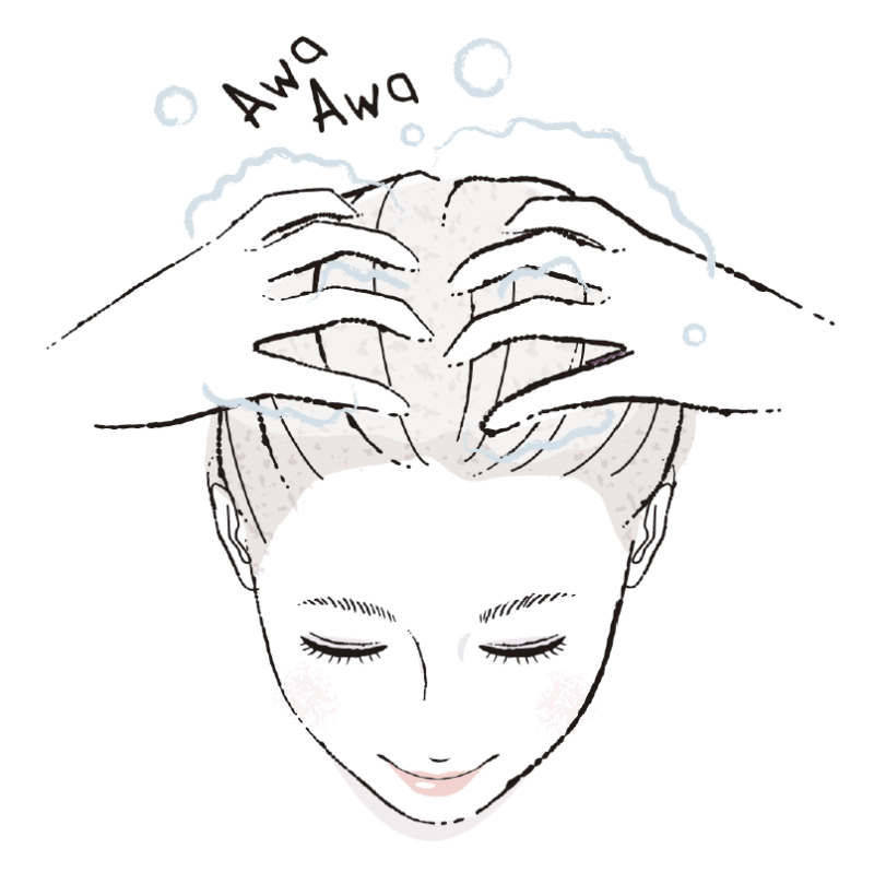 髪の間に空気を送り込むようにしてしっかり泡立ててから、頭皮を洗っていく。