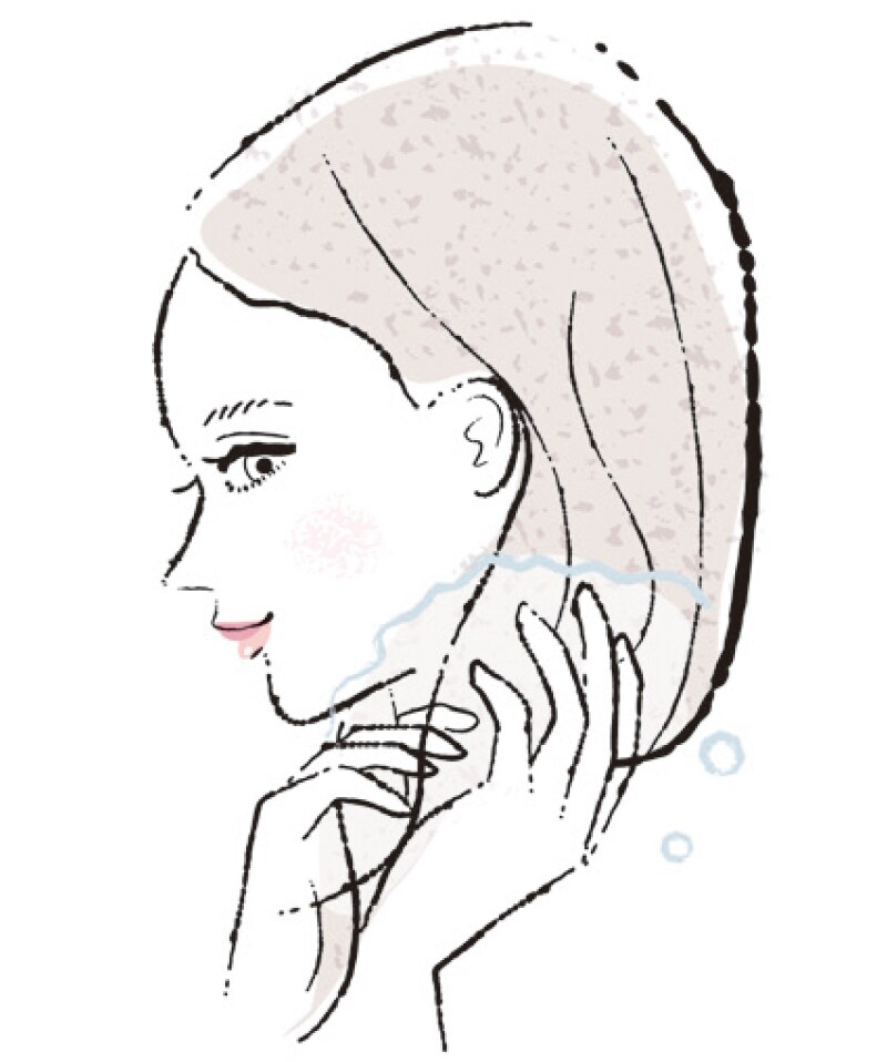 「髪を濡らす」ではなく、まずは38度のぬるま湯で、頭皮と髪を洗う。