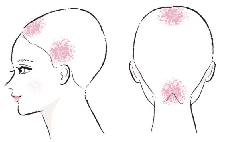 3. シャンプーを頭の5か所に置く