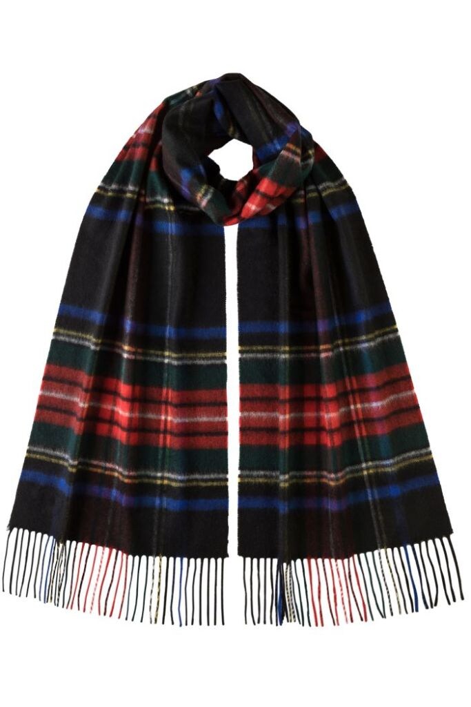 1797年に創業し、2世紀を超える英国王室御用達ブランド「Johnstons of Elgin(ジョンストンズ オブ エルガン)」からは、100%カシミヤの「ブラック・スチュワート・タータン・ワイド・カシミヤ・マフラー」を1名様に。最高級のカシミヤから作られたクラシックなマフラーは、時代を超えたデザインで、多くの人から愛される人気のアイテム。印象的なタータンは、黒と赤の大胆なパターンを特徴とし、青、緑、黄色、白の鮮やかなアクセントが加えられている。スコットランドの伝統的な優雅さと卓越した職人技が融合している一枚だ。
