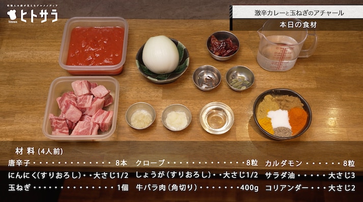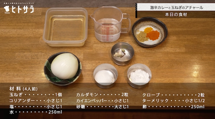 玉ねぎのアチャールの材料(4人分) 調理時間:3時間10分