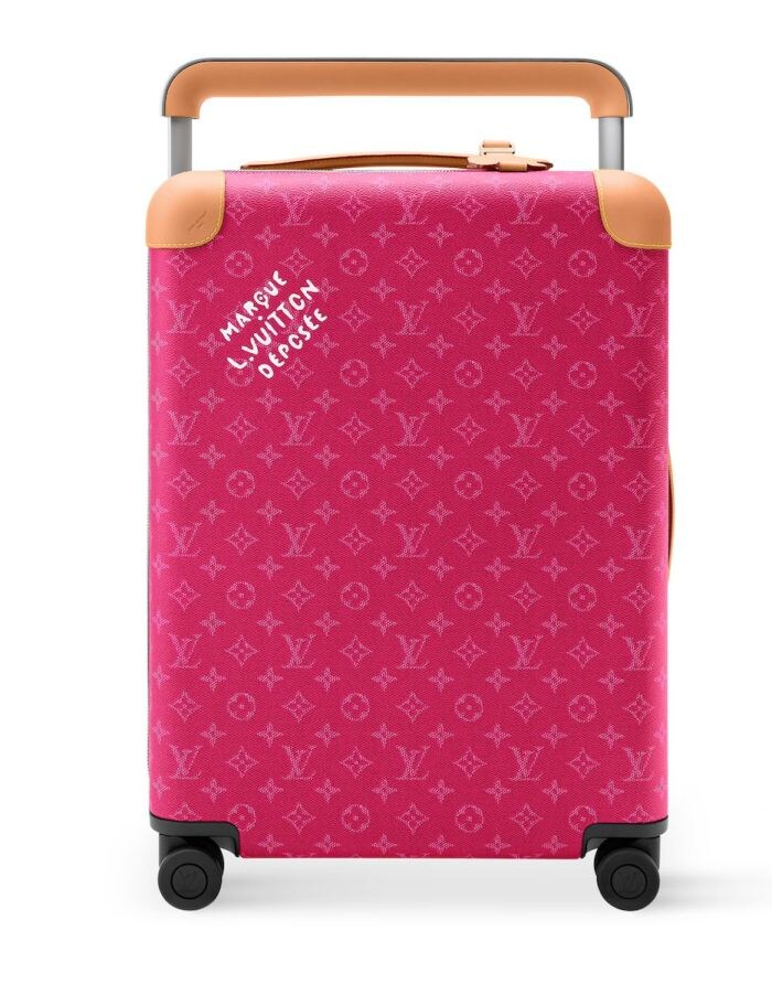 ルイ・ヴィトンのメンズ クリエイティブディレクターである、ファレル・ウィリアムスお気に入りの「Marque L. Vuitton Déposée」シグネチャーがあしらわれた遊び心も楽しい。広々とした内部空間を確保できるようにキャリーハンドルを外付けにしている点もポイントだ。