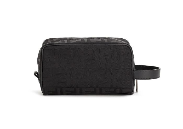 ブラックカラーの仕上げに「FF」ロゴモチーフが全面にあしらわれ、ブラックのカーフレザーのディテールがアクセントを添えるシックなたたずまい。内側には「FF」ロゴモチーフ入りのファブリックでライニングを施し、ジップポケット付きのパーティションと調節可能なストラップを配したコンパートメントで荷物も整理しやすい。せっかくなら、日用品を整理して入れるポーチも「FF」ロゴモチーフでそろえては。四つのキャスターを備えたキャビンサイズという点で実用性も高い。