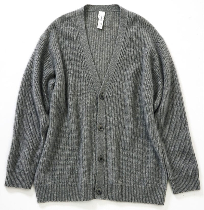 デニムジャケットとパンツは同色を選んでセットアップ感を出し、ざっくりとした編地のカシミアカーディガンをラフにはおって。