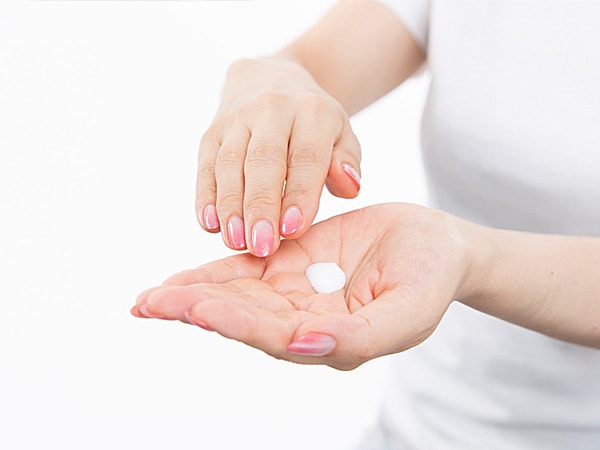 2. 5点置きはNG!手のひら全体にのばし、温めて。