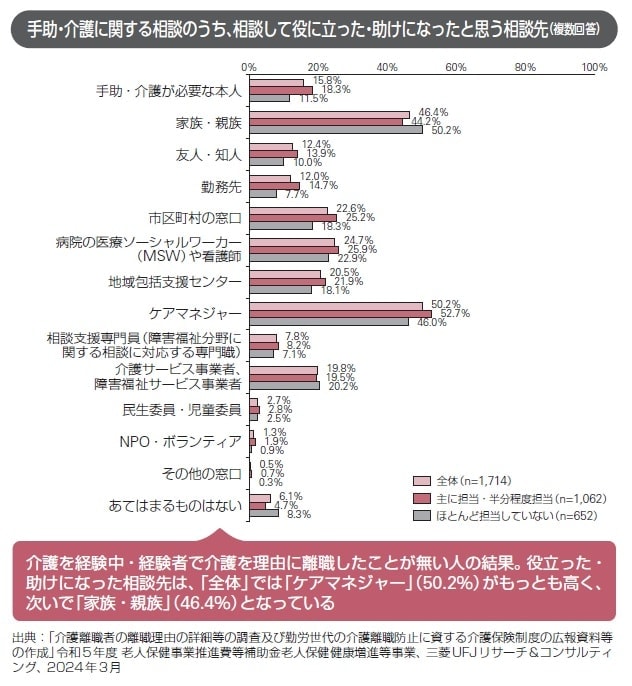 [図表3]手助・介護に関する相談のうち、相談して役に立った・助けになったと思う相談先(複数回答)