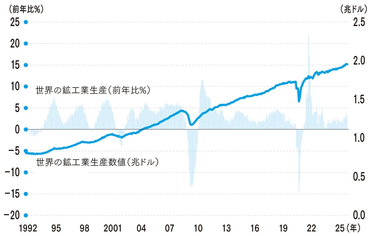 2025年の世界経済は、全体として堅調さを維持しており、世界の景況感を見ると現在はいわば景気拡大の「7合目」に差し掛かっている状況にあります。各国の企業活動は底堅く、生産や貿易のやり取りも、地域ごとの摩擦を除けば世界全体では順調に推移しています(図表1)。