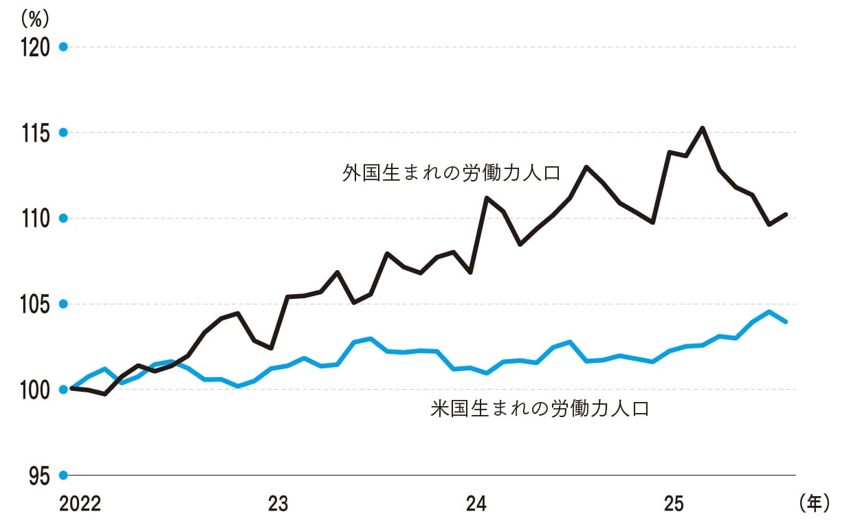 第三に、労働供給の制約です。これまで米国において労働力人口の増加を支えてきた外国人労働者が、移民制限によって十分に流入しなくなり、主要な供給源としての役割を果たせなくなるリスクが台頭しています(図表4)。