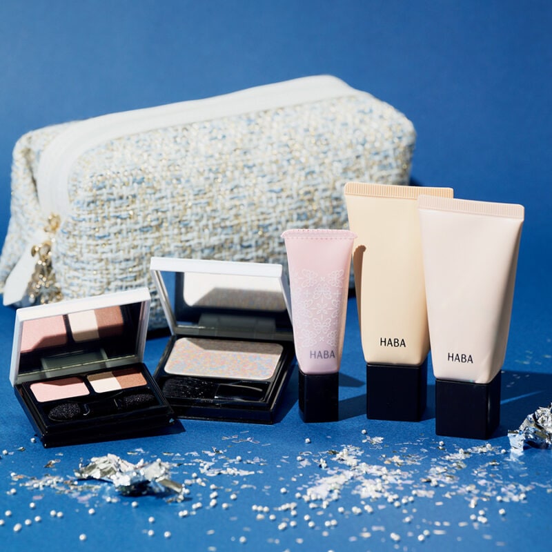 薬用 スキンケアS BB NO 01またはNB02から1色[医薬部外品] 25mL、パピヨンパウダーコンシーラー、パピヨンアイパレット、パピヨンリップ、オリジナルツイードポーチ(縦7×横17×マチ7cm)