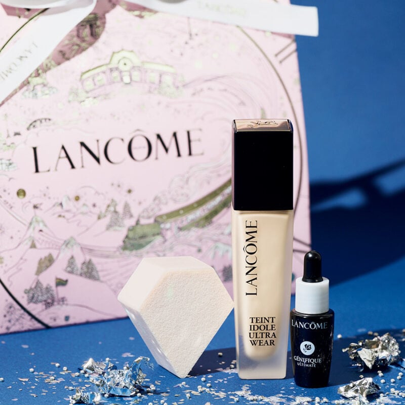 タンイドル ウルトラ ウェア リキッドNまたはケアアンド グロウからファンデーション1品、ジェニフィック アルティメセラム 7mL、タン イドル ウルトラ ウェア メイクアップ スポンジ