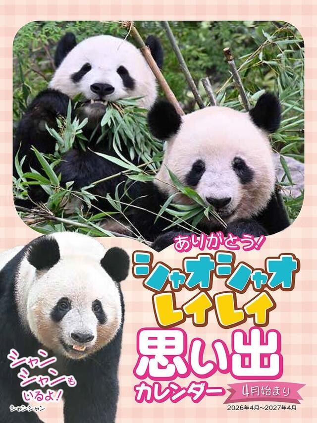 2021年6月23日に日本で誕生したシャオシャオとレイレイ。2026年2月には返還先の中国へと旅立つ「シャオシャオ・レイレイ」の思い出を詰め込んだ4月始まりカレンダーが登場(掲載月:2026年4月~2027年4月)。